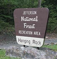 turn into the Hanging Rock Recreation Area at the sign on the left. The sign is big.